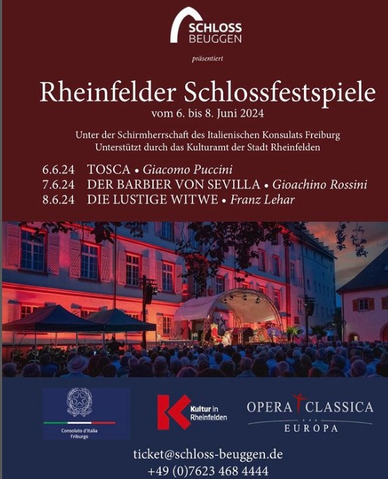Das Schloss wird ein perfekter Ort sein, um dem Publikum die Möglichkeit zu geben, Opern unter freiem Himmel zu besuchen und Kultur in einer magischen und stimmungsvollen Atmosphäre zu erleben, die italienische Oper mit der schönen deutschen Landschaft verbindet. Ermöglicht wird dies durch die hervorragende Zusammenarbeit des Konsulats mit der Stadt Rheinfelden, in der eine große Zahl von Italienern wohnt.