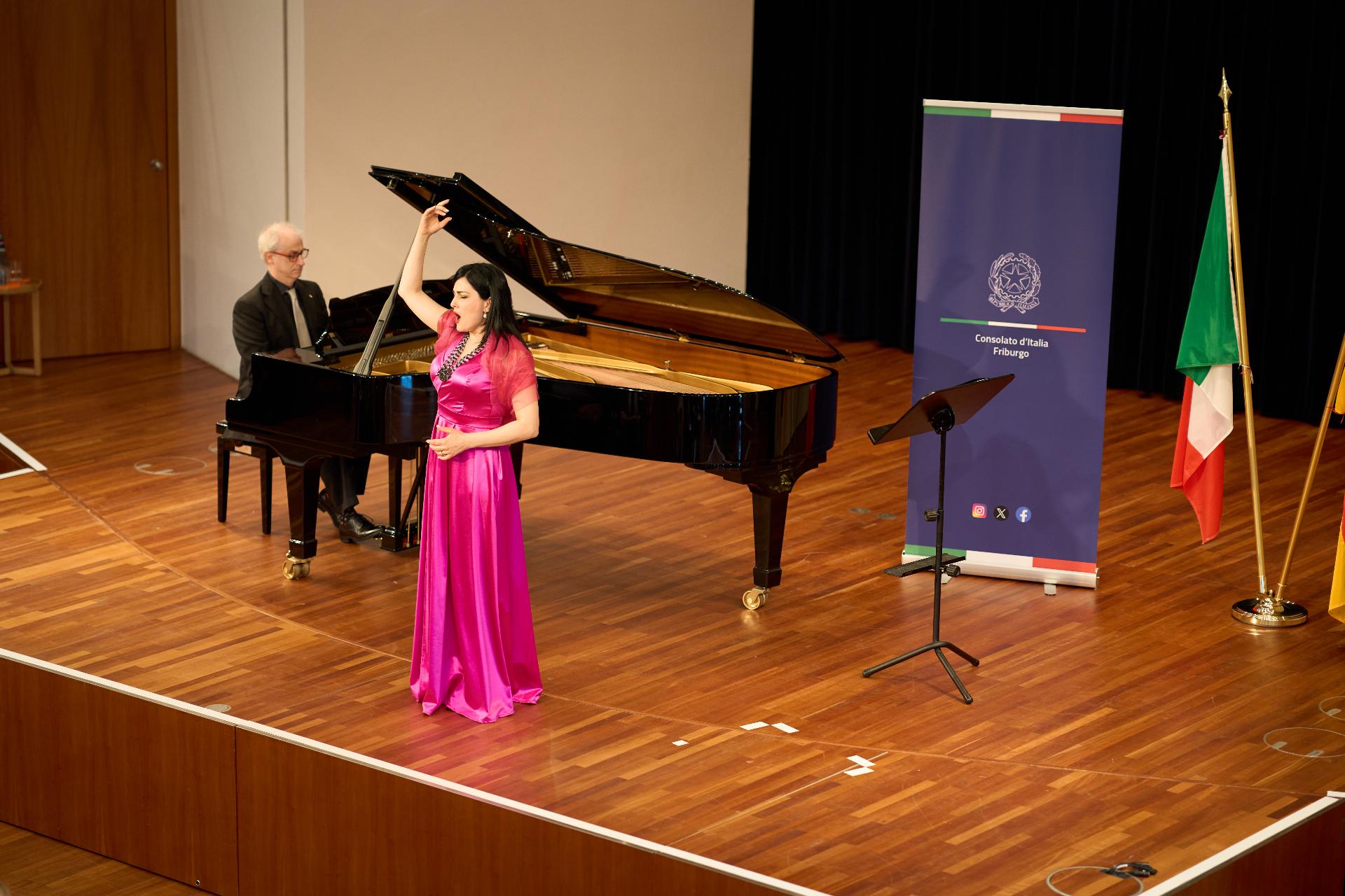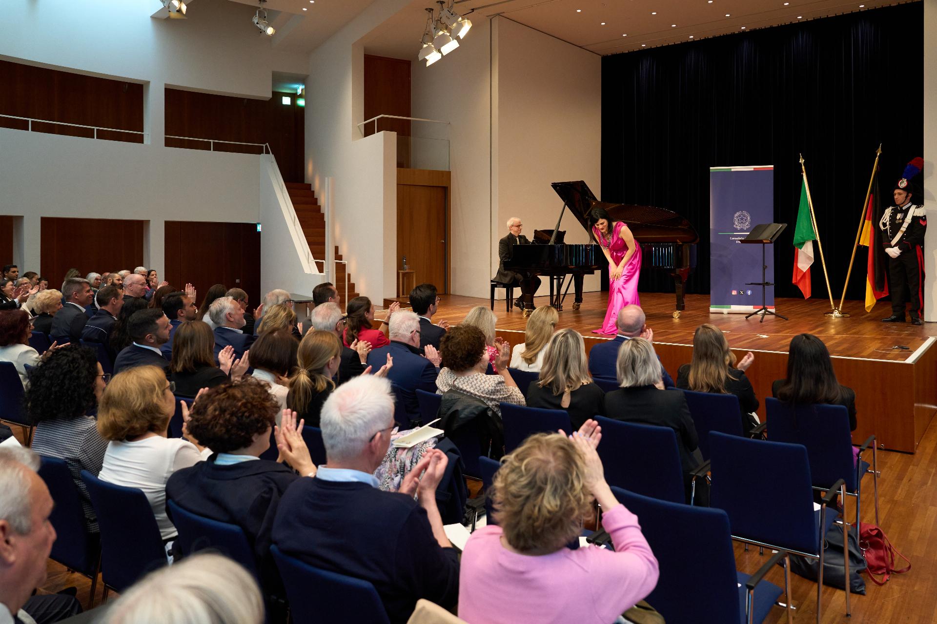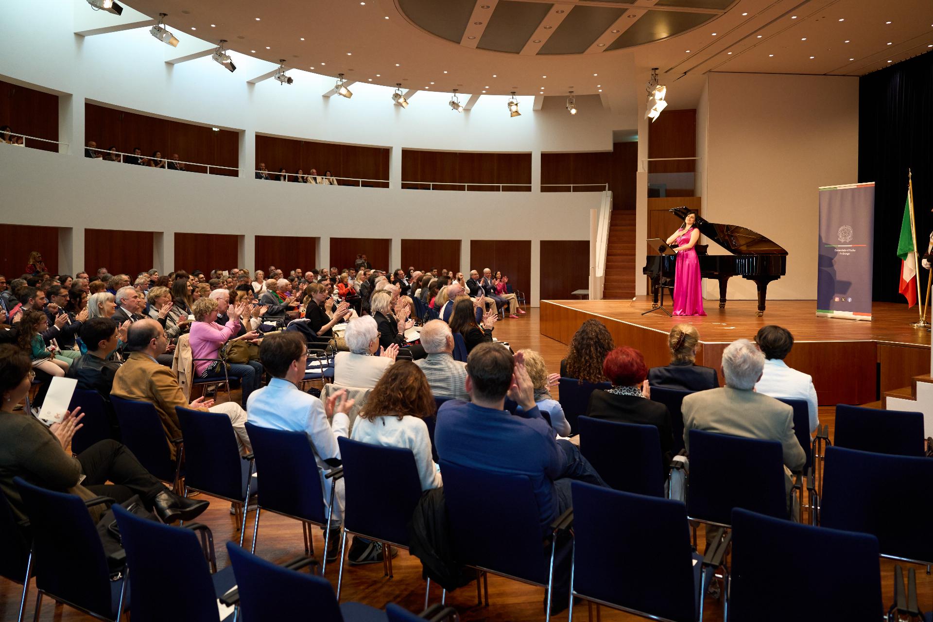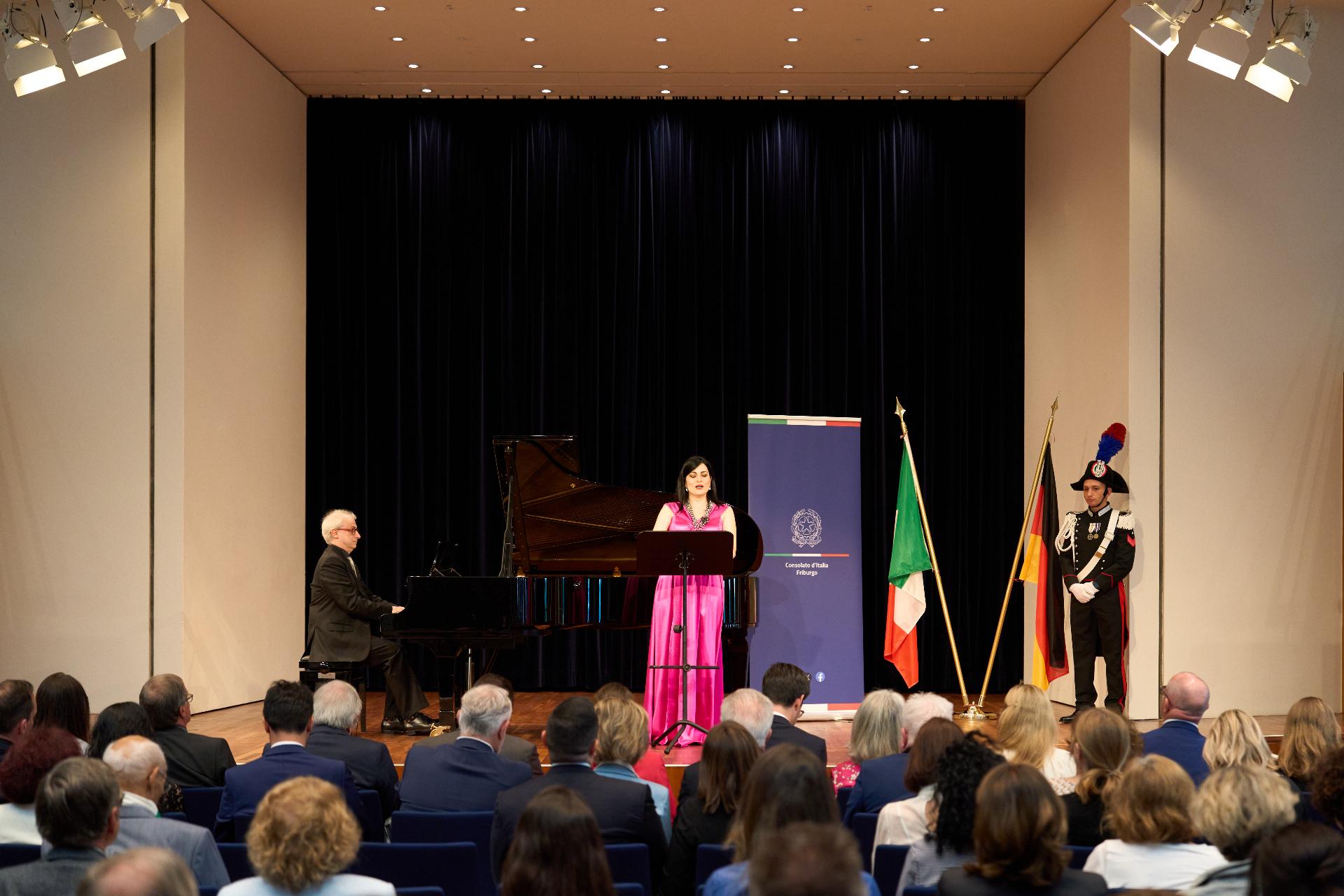 Due prestigiosi artisti del Teatro, il soprano Rosanna Lo Greco e il pianista Alberto Boischio, si sono esibiti nella splendida cornice della Konzerthaus davanti ad un pubblico di circa 300 persone, tra cui il sindaco di Friburgo Martin Horn e svariati rappresentanti delle istituzioni politiche, economiche e culturali locali con cui le quali il Consolato collabora stabilmente: la Direttrice dei musei cittadini Jutta Götzmann, il Sovrintendente del Teatro Peter Carp, il sindaco di Rheinfelden Klaus Eberhardt e la sindaca di Merzhausen Melanie Kienle, il Procuratore Capo Klaus Hoffmann, il Presidente del Comites di Friburgo Andrea Gatti e molti altri esponenti della comunità italo-tedesca della circoscrizione.