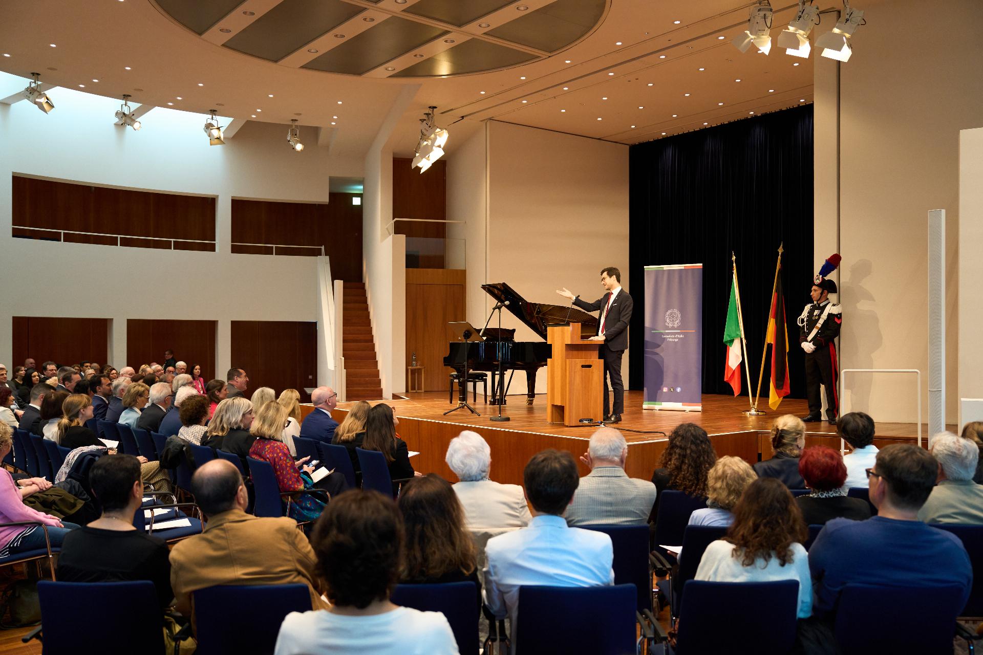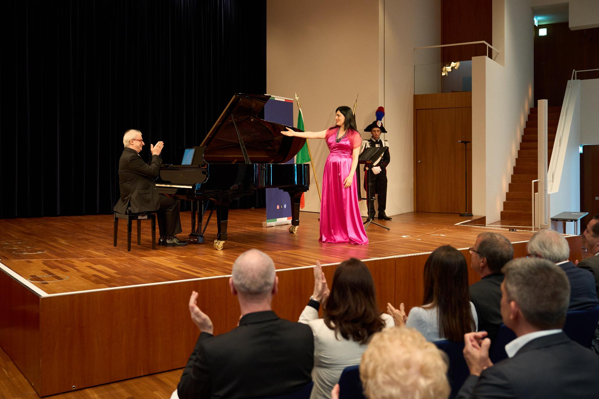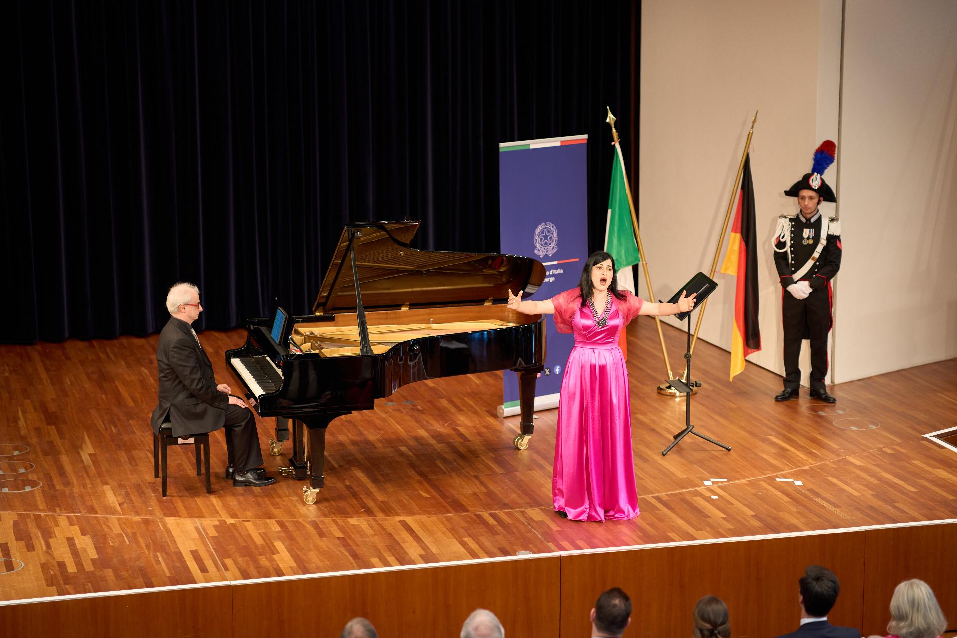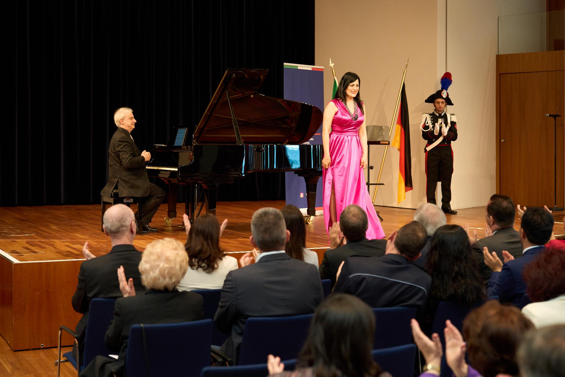 Due prestigiosi artisti del Teatro, il soprano Rosanna Lo Greco e il pianista Alberto Boischio, si sono esibiti nella splendida cornice della Konzerthaus davanti ad un pubblico di circa 300 persone, tra cui il sindaco di Friburgo Martin Horn e svariati rappresentanti delle istituzioni politiche, economiche e culturali locali con cui le quali il Consolato collabora stabilmente: la Direttrice dei musei cittadini Jutta Götzmann, il Sovrintendente del Teatro Peter Carp, il sindaco di Rheinfelden Klaus Eberhardt e la sindaca di Merzhausen Melanie Kienle, il Procuratore Capo Klaus Hoffmann, il Presidente del Comites di Friburgo Andrea Gatti e molti altri esponenti della comunità italo-tedesca della circoscrizione.
