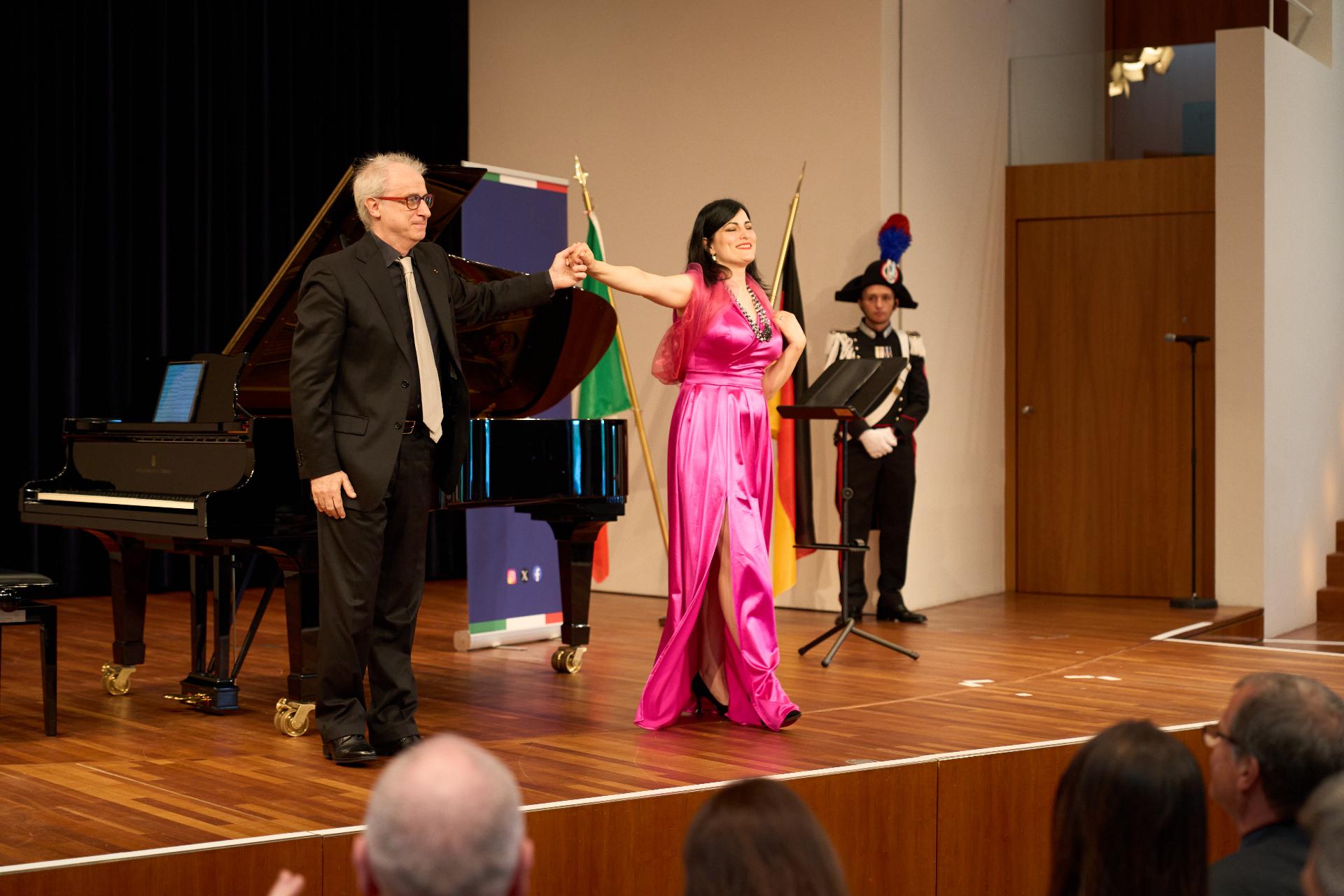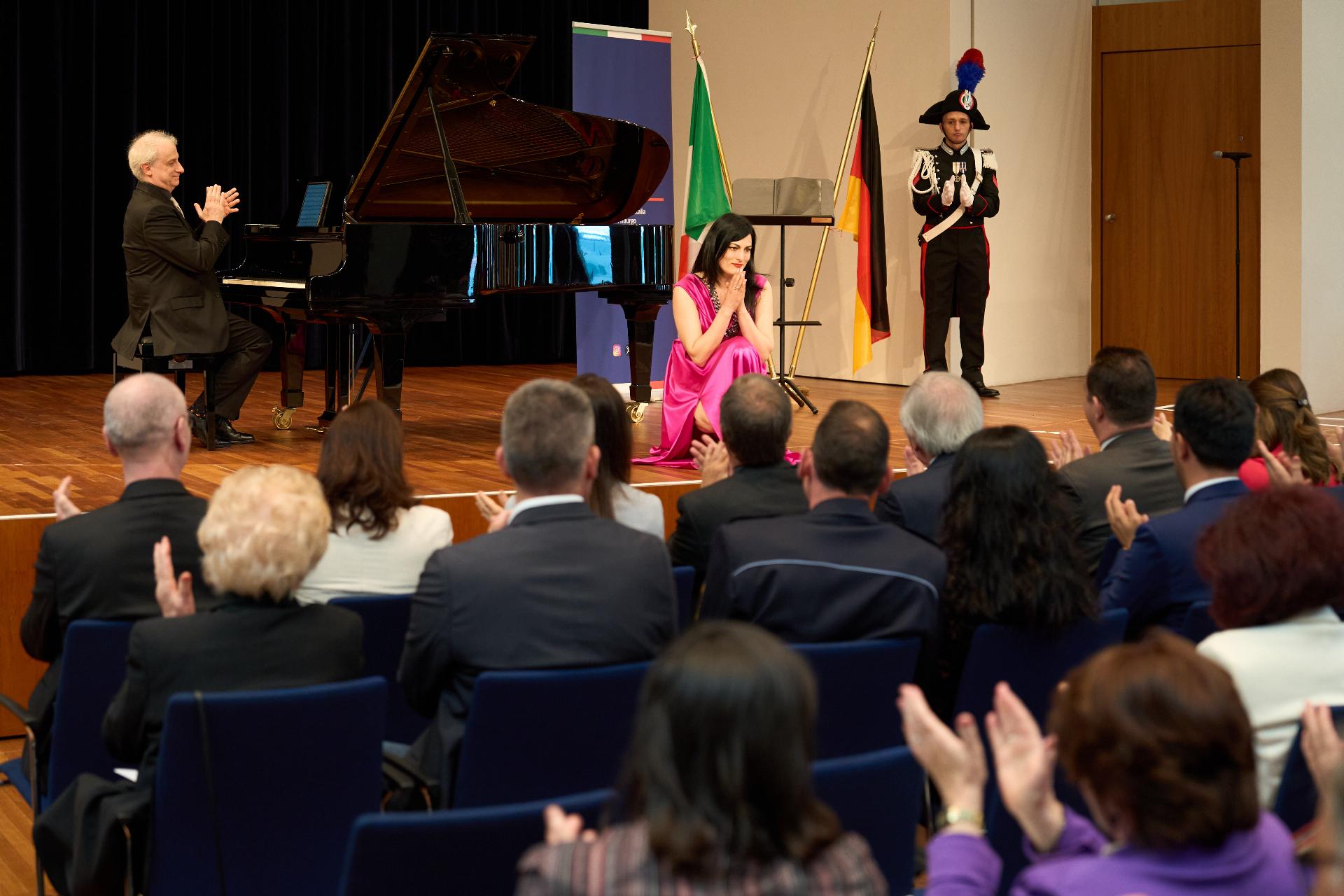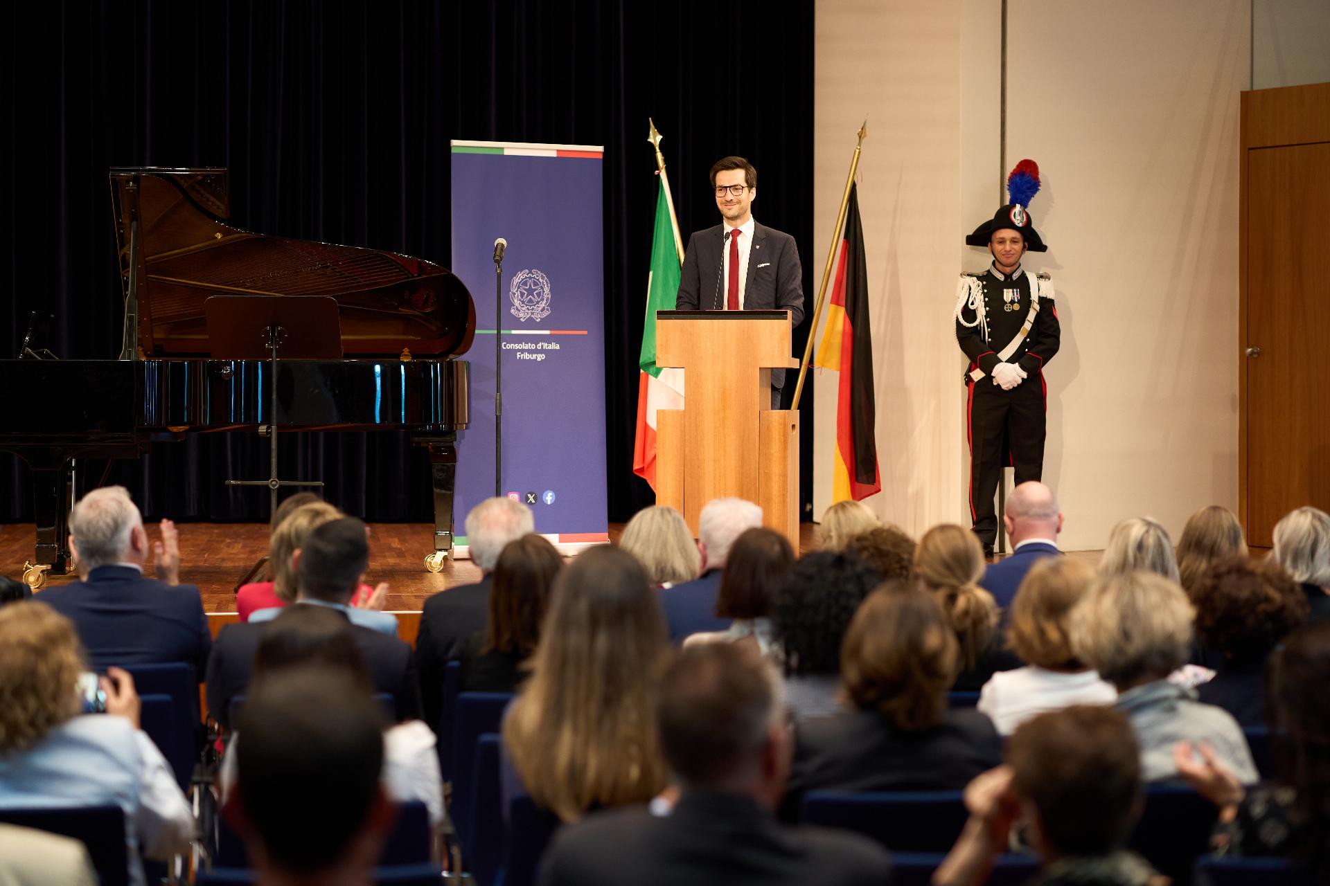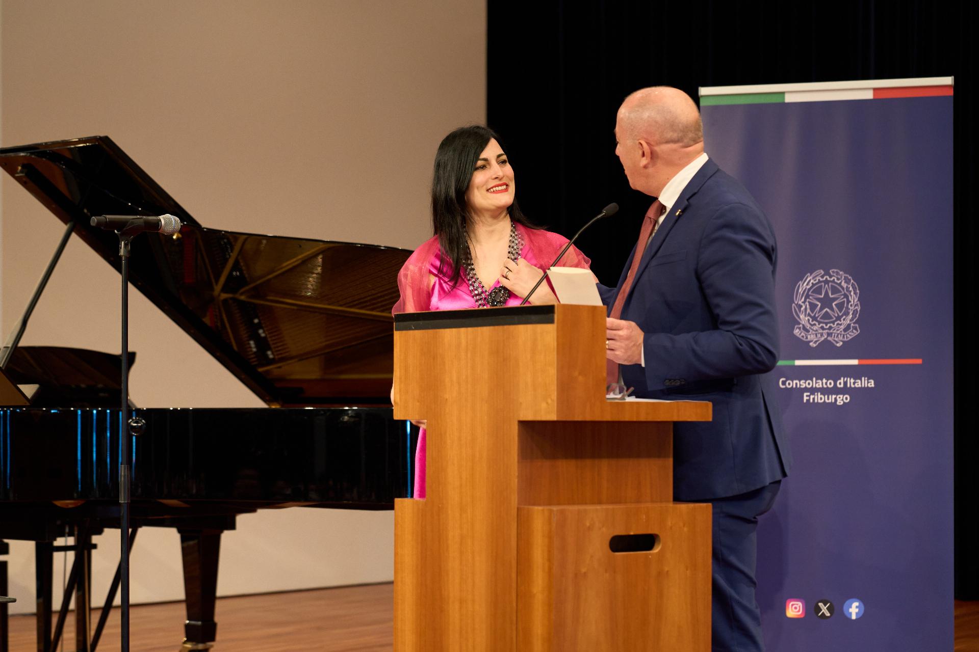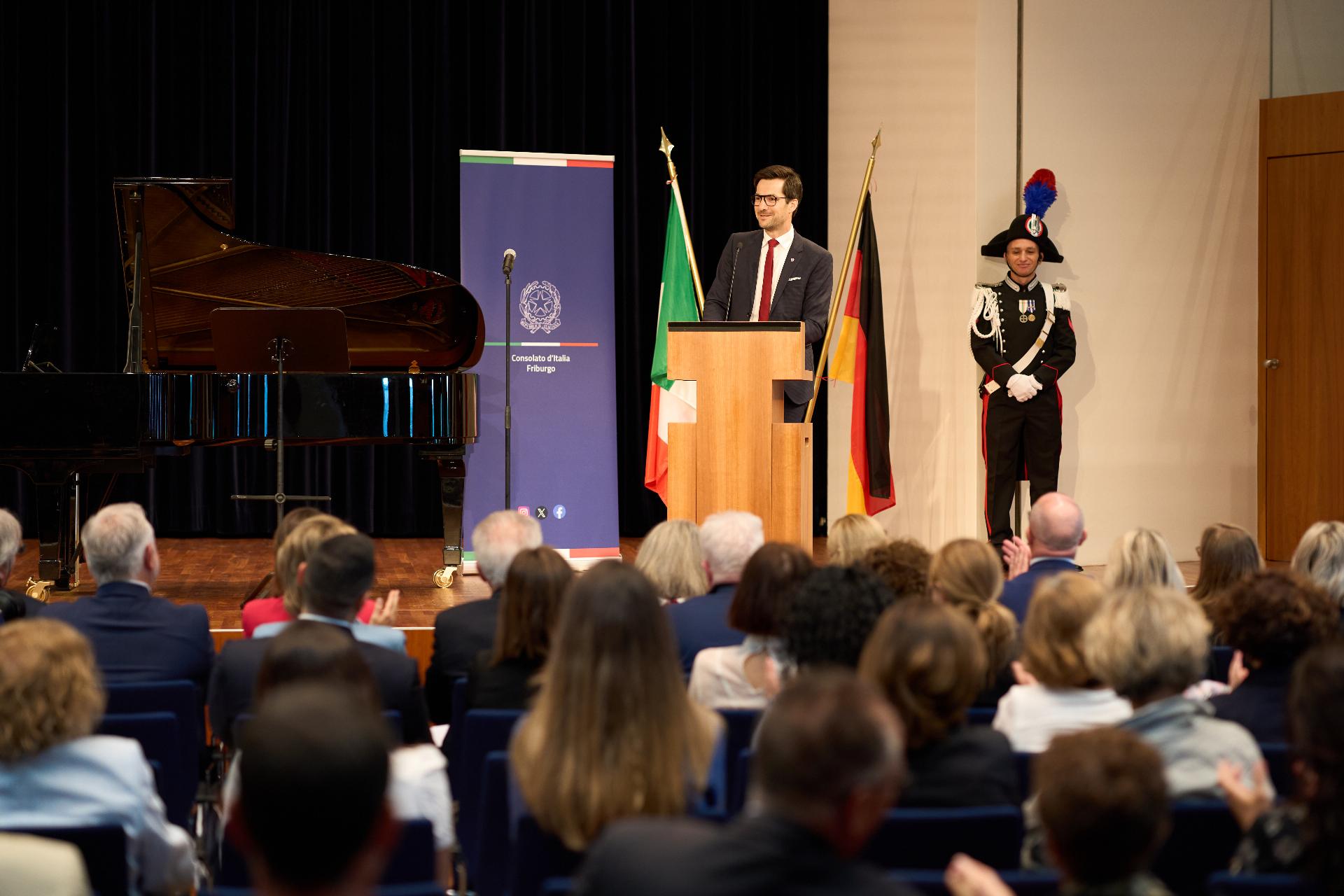 Due prestigiosi artisti del Teatro, il soprano Rosanna Lo Greco e il pianista Alberto Boischio, si sono esibiti nella splendida cornice della Konzerthaus davanti ad un pubblico di circa 300 persone, tra cui il sindaco di Friburgo Martin Horn e svariati rappresentanti delle istituzioni politiche, economiche e culturali locali con cui le quali il Consolato collabora stabilmente: la Direttrice dei musei cittadini Jutta Götzmann, il Sovrintendente del Teatro Peter Carp, il sindaco di Rheinfelden Klaus Eberhardt e la sindaca di Merzhausen Melanie Kienle, il Procuratore Capo Klaus Hoffmann, il Presidente del Comites di Friburgo Andrea Gatti e molti altri esponenti della comunità italo-tedesca della circoscrizione.