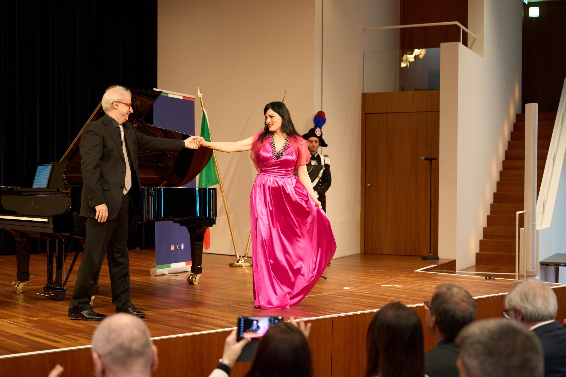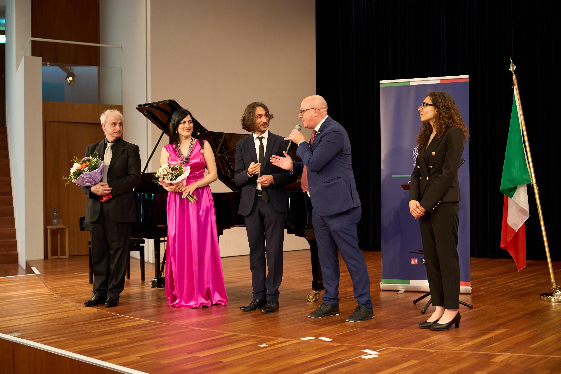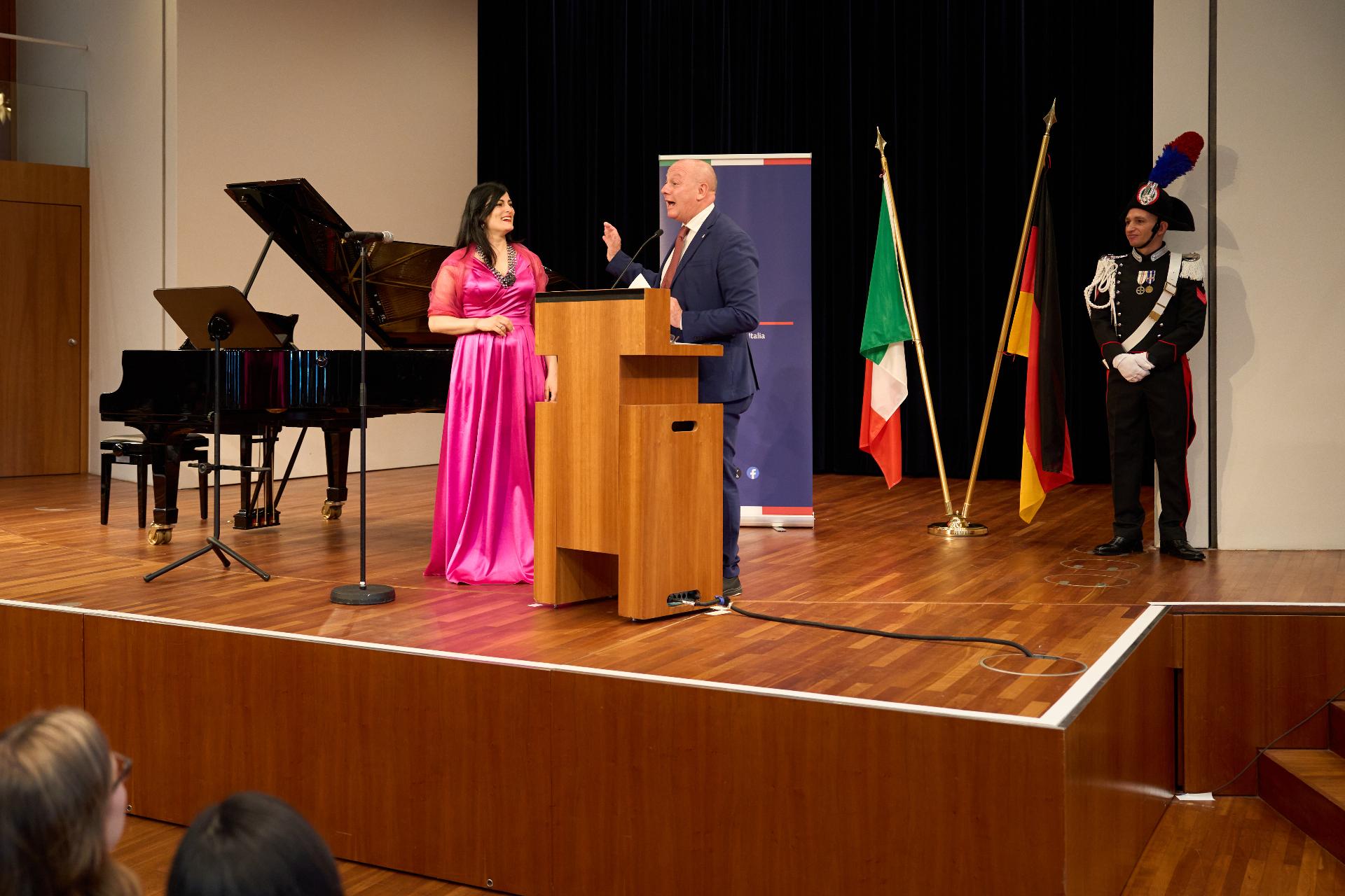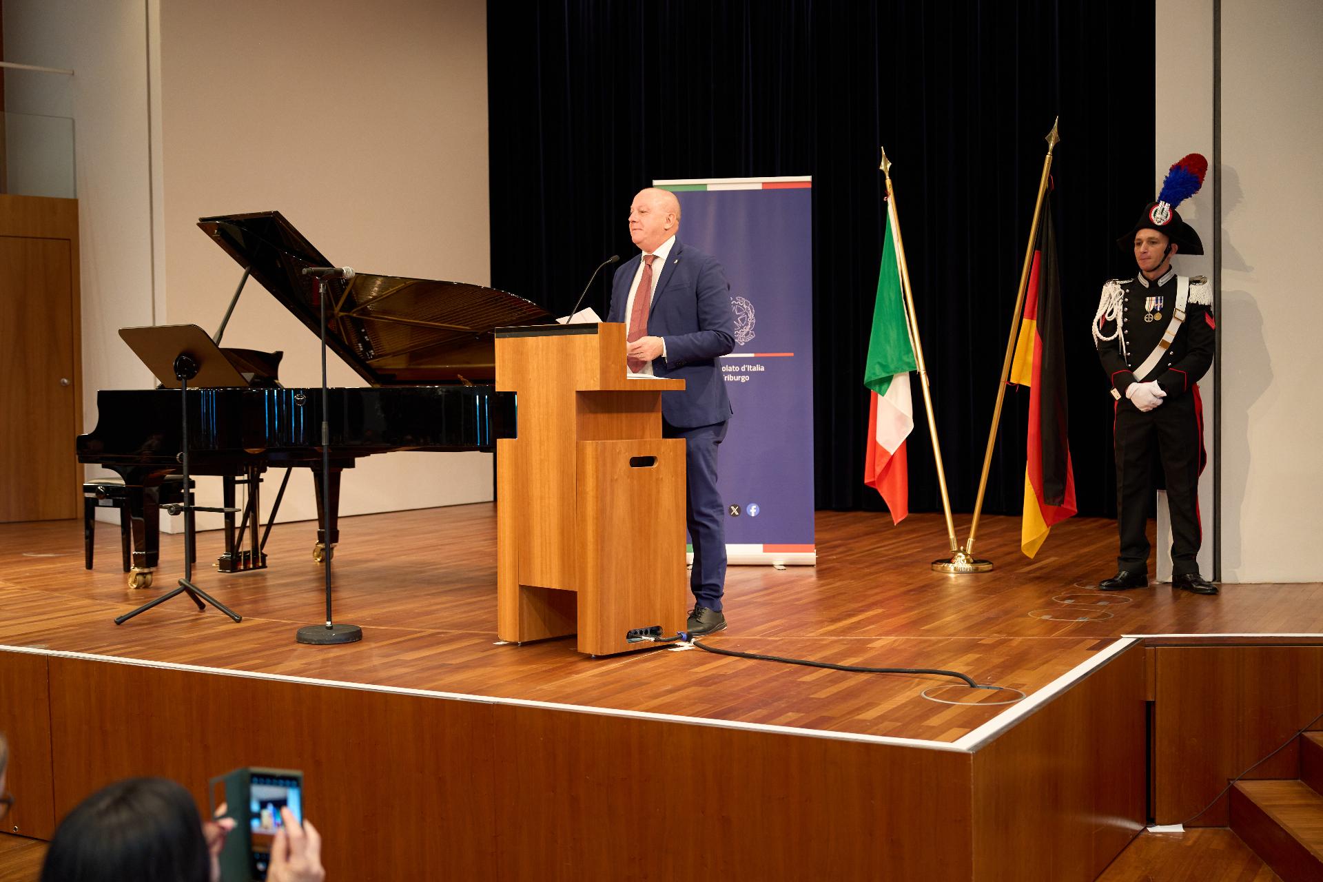 Due prestigiosi artisti del Teatro, il soprano Rosanna Lo Greco e il pianista Alberto Boischio, si sono esibiti nella splendida cornice della Konzerthaus davanti ad un pubblico di circa 300 persone, tra cui il sindaco di Friburgo Martin Horn e svariati rappresentanti delle istituzioni politiche, economiche e culturali locali con cui le quali il Consolato collabora stabilmente: la Direttrice dei musei cittadini Jutta Götzmann, il Sovrintendente del Teatro Peter Carp, il sindaco di Rheinfelden Klaus Eberhardt e la sindaca di Merzhausen Melanie Kienle, il Procuratore Capo Klaus Hoffmann, il Presidente del Comites di Friburgo Andrea Gatti e molti altri esponenti della comunità italo-tedesca della circoscrizione.